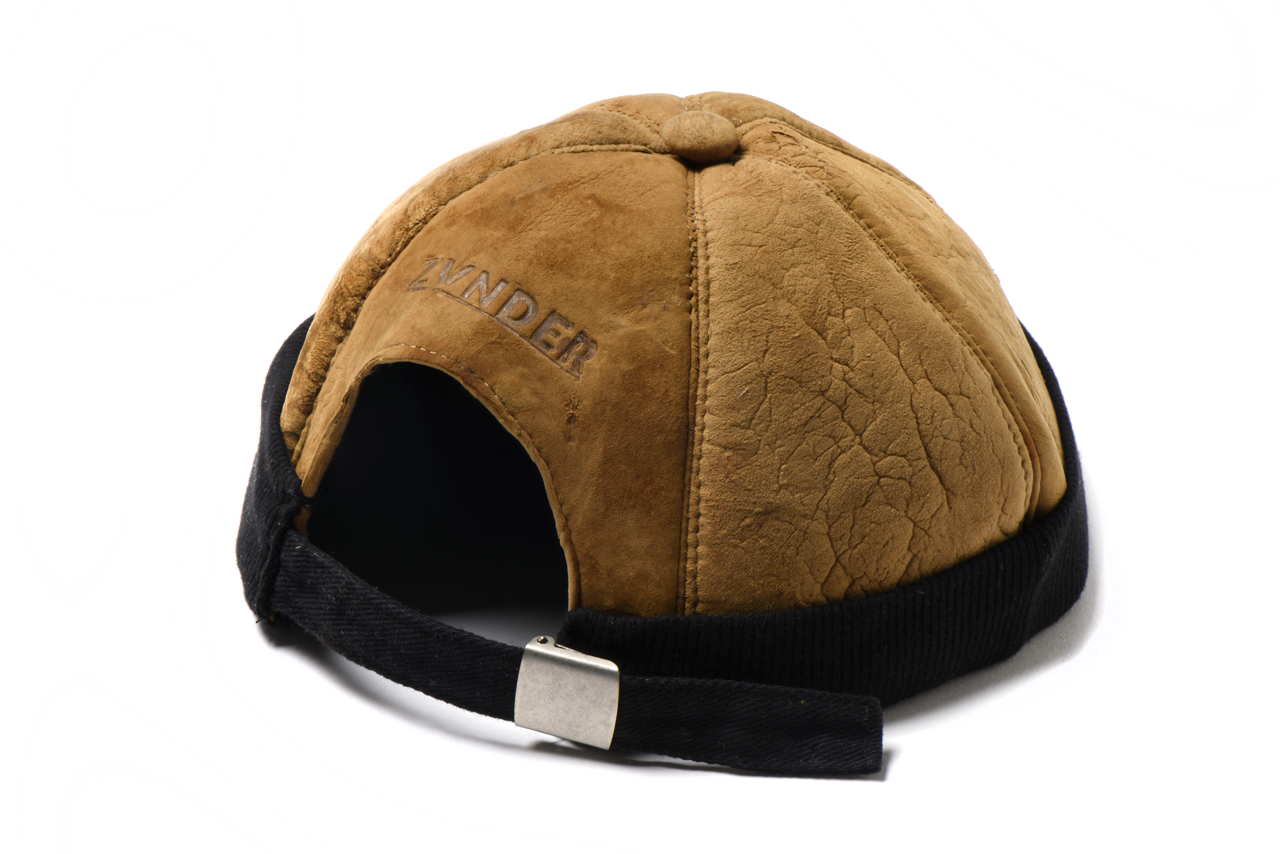 The cap in the classic fisherman's hat design is made of untreated mushroom material and is only coated with standard impregnation spray to protect it from moisture. The inner lining is made of black cotton. The Docker Caps are made in one-size and are size adjustable with a buckle.